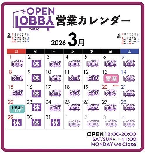 | 2024.12.20 定休日を月曜日とさせていただきます。 |